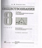 Учебник «Обществознание. 8 класс» автора Никитина А.Ф. – это современное и актуальное пособие, разработанное в соответствии с Федеральным государственным образовательным стандартом (ФГОС) основного общего образования. Он предназначен для учащихся 8-х классов общеобразовательных организаций и призван сформировать у них целостное представление об обществе, его структуре, основных сферах жизнедеятельности и социальных институтах. Книга охватывает широкий спектр тем, необходимых для понимания окружающего мира и активного участия в жизни общества. Учебник начинается с введения в обществознание, где определяются основные понятия, такие как общество, социальные отношения, социальные нормы и ценности. Далее рассматриваются различные сферы общественной жизни: экономическая, социальная, политическая и духовная. В экономической сфере учебник знакомит школьников с основами экономики, такими как производство, распределение, обмен и потребление. Рассматриваются различные экономические системы, роль государства в экономике, а также основные экономические показатели. Особое внимание уделяется вопросам предпринимательства и финансовой грамотности, что позволяет ученикам получить практические навыки, необходимые для успешной адаптации в современном мире. Социальная сфера представлена темами, посвященными социальной структуре общества, социальным группам, социальным институтам, а также проблемам социального неравенства и социальной мобильности. Ученики узнают о роли семьи, образования, здравоохранения и социальной защиты в жизни общества. Рассматриваются вопросы демографии, миграции и урбанизации, а также проблемы, связанные с этими процессами. Политическая сфера учебника посвящена изучению государства, его функций и форм правления. Рассматриваются различные политические системы, политические партии и движения, а также роль граждан в политической жизни общества. Особое внимание уделяется вопросам демократии, прав человека и гражданского общества. Ученики знакомятся с основами избирательного права и политического участия. Духовная сфера представлена темами, посвященными культуре, науке, образованию, религии и морали. Рассматривается роль культуры в формировании личности и общества, а также влияние науки и технологий на развитие цивилизации. Ученики узнают о различных формах религии и их роли в истории и современном мире. Особое внимание уделяется вопросам морали и нравственности, а также формированию у школьников активной гражданской позиции. Учебник «Обществознание. 8 класс» Никитина А.Ф. отличается четкой структурой, доступным языком изложения и большим количеством наглядных материалов. В нем содержатся схемы, таблицы, иллюстрации и диаграммы, которые помогают ученикам лучше усвоить материал. В конце каждой главы приводятся вопросы и задания для самоконтроля, а также темы для дискуссий и проектной деятельности. Учебник содержит множество примеров из реальной жизни, что делает изучение обществознания более интересным и увлекательным. Он способствует развитию критического мышления, аналитических способностей и умения работать с информацией. Учебник Никитина А.Ф. – это надежный помощник в изучении обществознания и подготовке к успешной сдаче экзаменов. На сайте есть и другие пдф книги с учебниками, ко